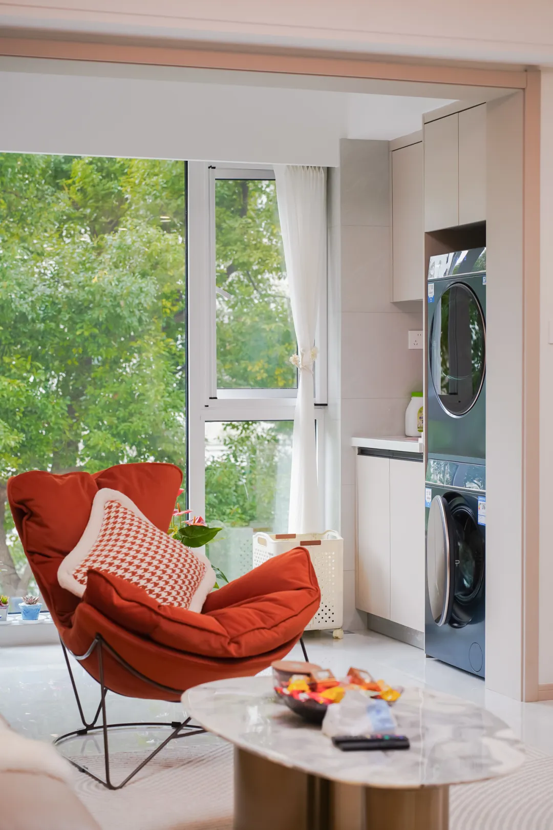 在传统户型中,弧形隔墙、封闭厨房等设计往往成为空间利用率低下的主要原因。此次案例中,设计师果断拆除阻碍通风与采光的墙体,让光线与空气在室内自由流动。通过开放式动线设计,居住者不再受限于“局促”和“昏暗”,而是能在视觉与功能上都体验到空间的放大感。